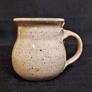 Vintage Handmade Ceramic Coffee Tea Mug Tan Gray Speckle Glaze Elephant Face