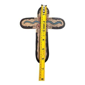 Vintage Handmade Ceramic Cross Wall Hanging Flower Southwest Blue & Brown Accent