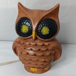 Vintage Handmade Ceramic Owl Light Hobbyist Hand Painted Electric Bird Lamp