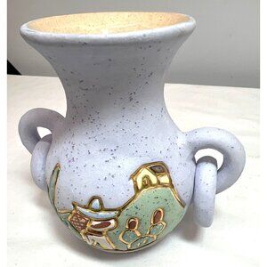 Vintage Handmade Ceramic Vase With Southwestern Design Dual Handles & Speckled F