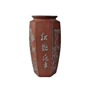 Pottery Reddish Brown Hexagon Shaped Vase. Very nice.