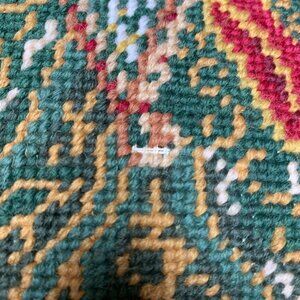 Vintage Handmade Christmas Angel Needlepoint Counted Cross Stitch Throw Pillow Wool Red Velvet Back Accent Home Holiday Decor