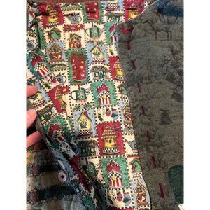 Vintage Handmade Christmas Reversible Jacket With Snowman & Birdhouse Appliqué