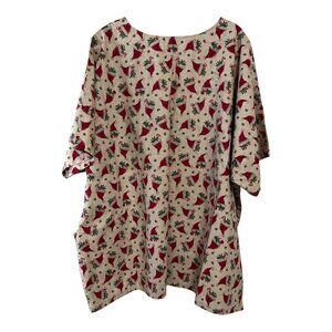 Vintage Handmade Christmas Scrub Top 2X – Santa Hat Holly Print Gold Sparkle – Flaw