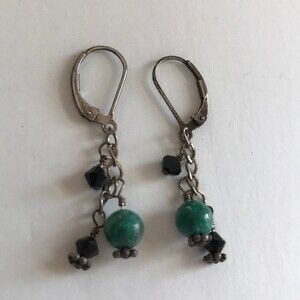 Vintage Handmade Chrysocolla Gemstone Dangle Earrings