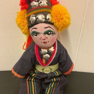 Vintage Handmade Cloth Asian Ethnic Doll With Clothing and Painted Face