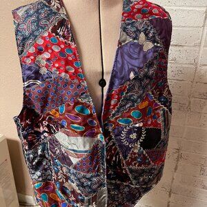 Vintage Handmade Crazy Patchwork Vest โ One-of-a-Kind Statement Piece