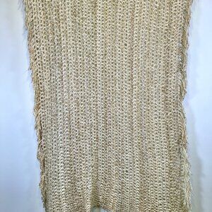 Vintage Handmade Cream Open-Weave Fringe Throw Retro Accent Blanket MCM Boho