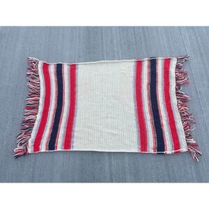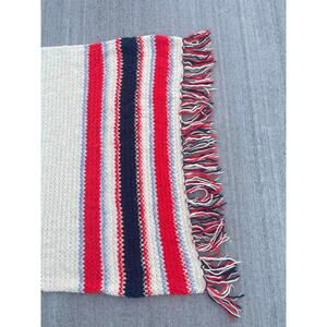 Vintage Handmade Crochet Afghan Striped Red White Blue Nautical Fringe Retro