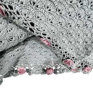 This pastel green tunic features a delicate crochet pattern with charming pink rose accents, offering a lightweight yet elegant choice for casual or semi-formal settings.
