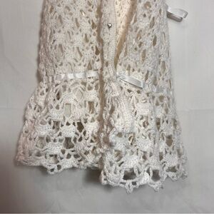 Vintage Handmade Crochet Knit Baby Girl Dress With Cute Heart Buttons