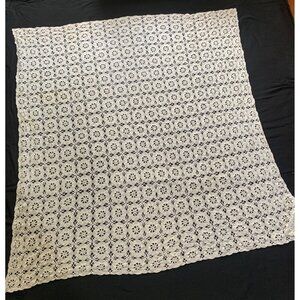 Vintage Handmade Crochet Lace Tablecloth 59x62
