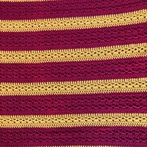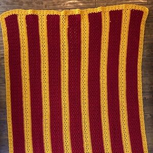 Vintage Handmade Crochet Red/Yellow Striped 69x42 Throw Blanket USC Kansas City