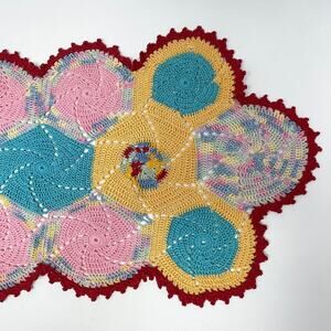 Vintage Handmade Crocheted Pink Yellow Robins Egg Blue Red Doily