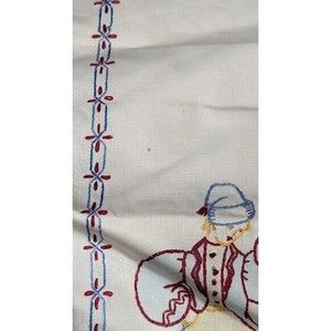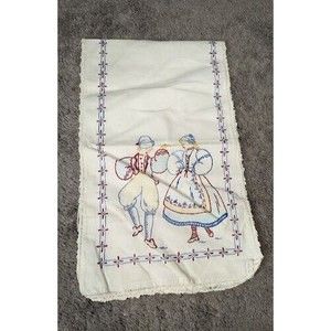 Vintage Handmade Cross Stitched Linen Tea Towel Dutch Dancers