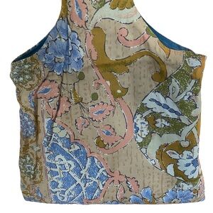 Vintage Handmade Denim And Floral Fabric Reversible Tote Bag
