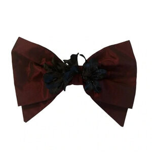 Burgundy taffeta fabric with black lace