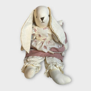 Vintage Handmade Easter Bunnies Rabbits Animals Primitive Country With Dress