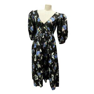 Vintage Handmade Eighties Cottage Core V Neck Balloon Sleeve Dress Sz Large Wome