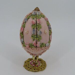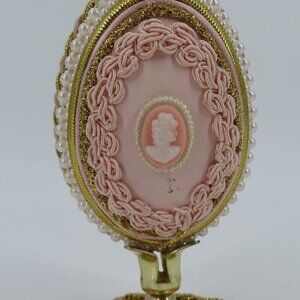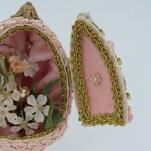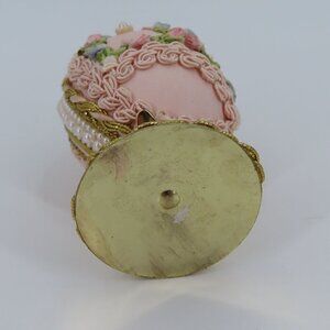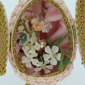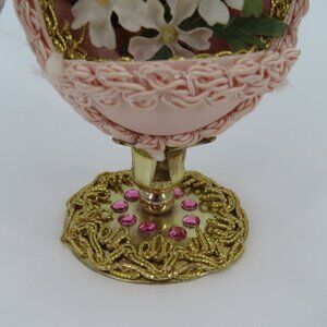 Vintage Handmade Embellished Real Egg Pink Painted Faux Flowers Pedestal Stand