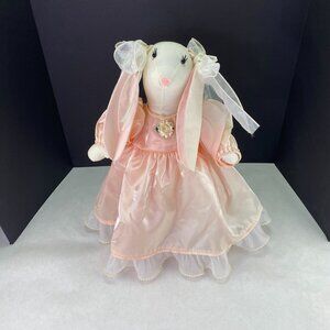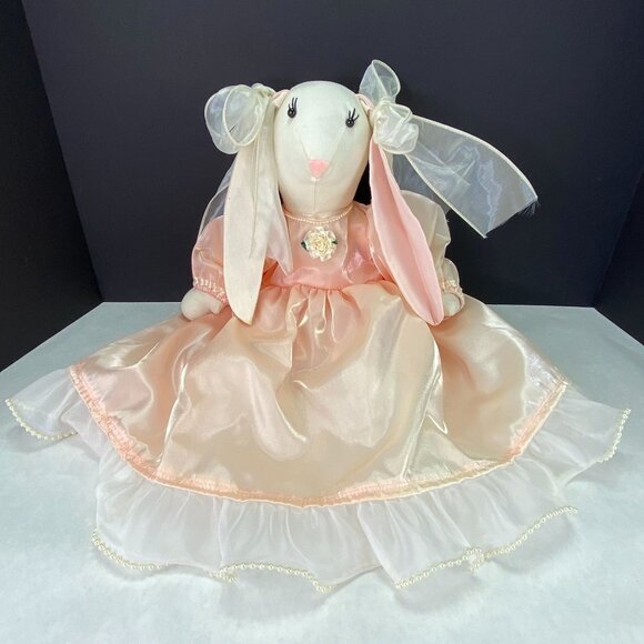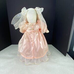 Vintage Handmade Fabric Bunny Rabbit Doll Dress and Faux Pearls