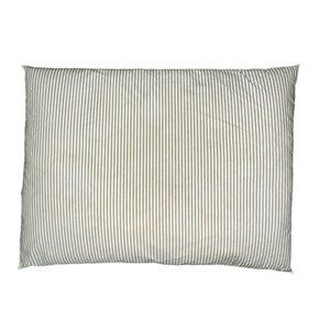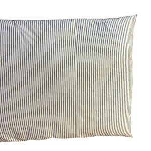 Authentic vintage handmade feather pillow featuring classic blue ticking stripe fabric, perfect for farmhouse, primitive, cottage, or rustic décor. The pillow has a medium feather fill that provides supportive yet comfortable loft, ideal for layering on a bed, bench, or sofa.