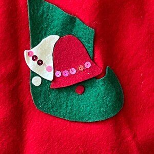 Vintage Handmade Felt Christmas Tree Skirt // Red & Green Pompom Trim