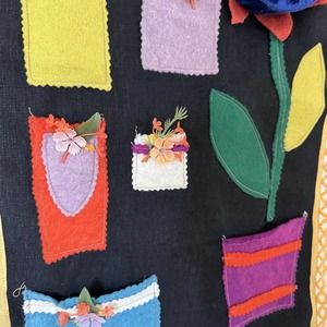 Vintage Handmade Felt Patchwork Sewing Pocket Wall Organizer Tatting Floral