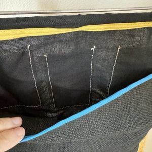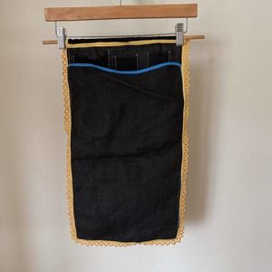 Measures approx 21 in tall and 15 in wide (including the dowel rod). Large pocket in back for additional storage.