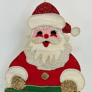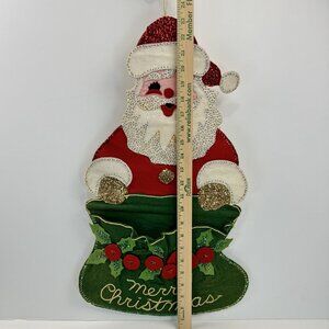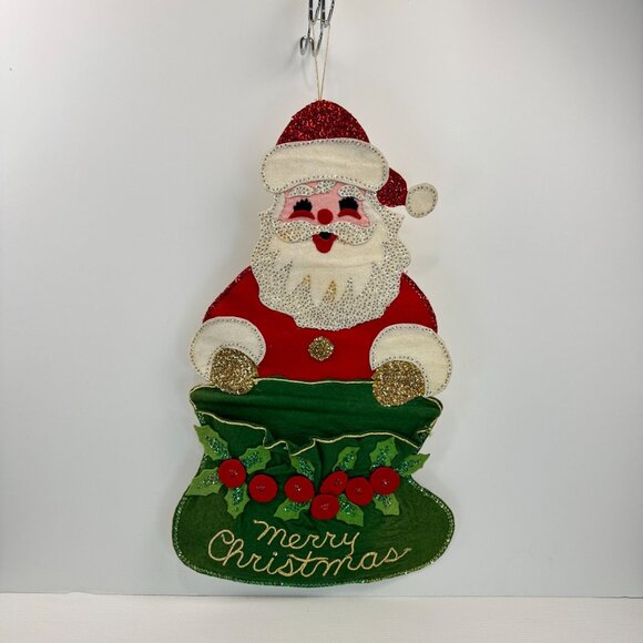 Vintage Handmade Felt Santa Wall Hanging Christmas Card Holder Sequins 23" Retro