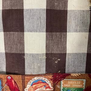 Vintage Handmade Fishing Tackle Apron Brown Gingham Check Retro Pocket Grilling