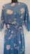 Elegant blue kimono dress with pink floral pattern. Perfect for a stylish look.