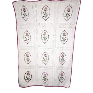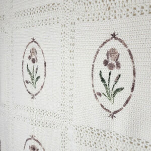 Vintage Handmade Floral Rose Crocheted Motif Granny Square Afghan Blanket 60x40