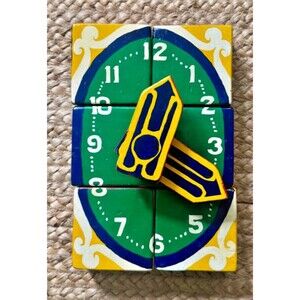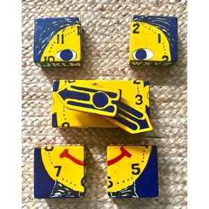 This listing is for a charming and unique wooden blocks puzzle which incorporates letters, numbers, and clocks