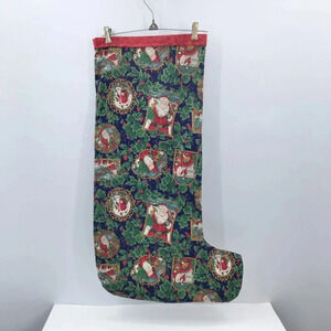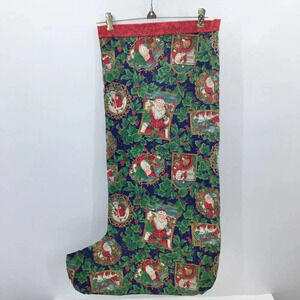 Vintage Handmade GIANT Christmas Stocking Santa Claus Holly Cottagecore Nordic