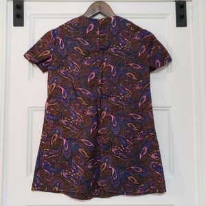 Vintage Handmade Girls 8 Mod Dress Paisley Mini Dress Retro 70's Brown Blue Pink
