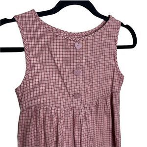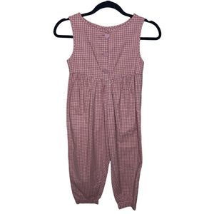Vintage Handmade Girls Romper Size 5 Pink Check Print Baggy 1990s Heart Buttons
