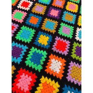 Vintage Handmade Granny Square Afghan Throw 54" Square