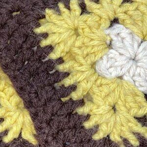 Vintage Handmade Granny Square Quilt Throw Blanket Brown Yellow Crochet Knit 70s