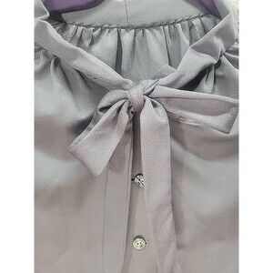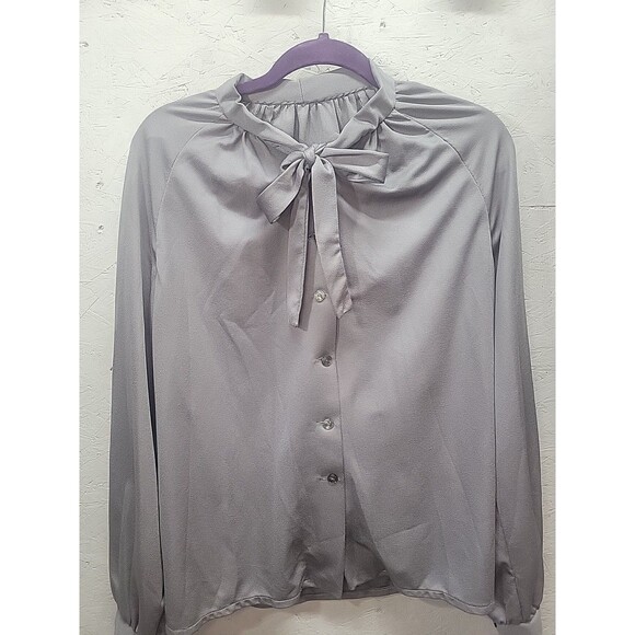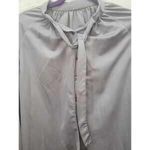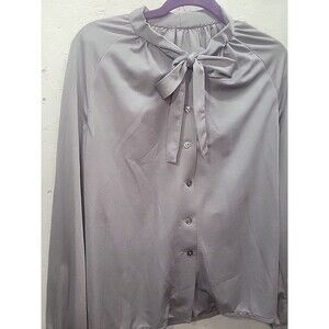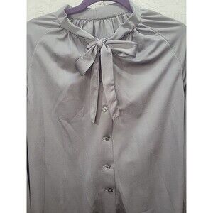 Vintage Handmade Gray Bow Tie Blouse Buttons Down Sz 2X