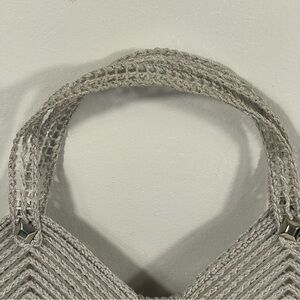 Vintage Handmade Gray Cross Stitch Plastic Canvas Woven Flower Accent Handbag