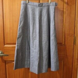 Vintage Handmade Gray Wool Plaid A-Line Midi Skirt Classic 70s Style M