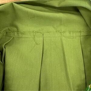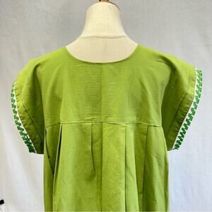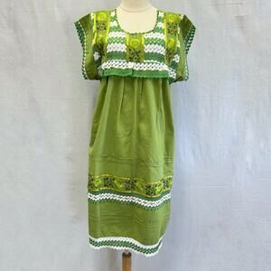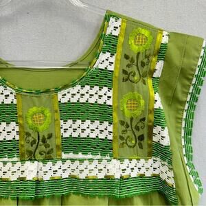Vintage Handmade Green Shift Dress Floral Embroidered Crocheted Accents One Size