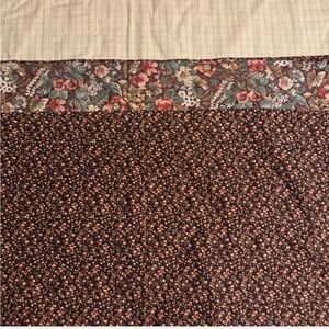 Vibrant quilted patchwork Curtain, wall hanging featuring a pumpkin, moon, and cat design. Perfect for adding a festive touch to any room. It is 27”x22” . Curtain rod slot shown. Can be used as a wall hanging, table runner , whatever your heart desires!