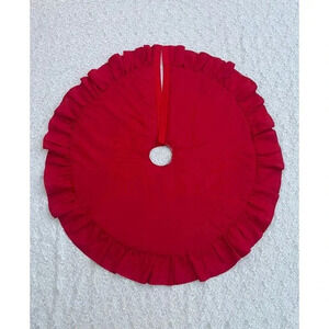 Vintage Handmade Holiday Christmas Tree Skirt Santa Claus Ruffle Pleated Red 36"