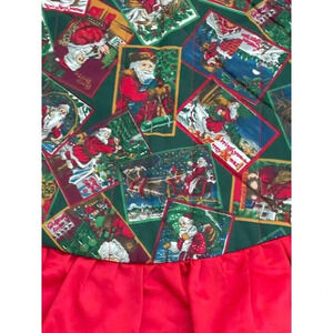 Vintage Handmade Holiday Christmas Tree Skirt Santa Claus Ruffle Pleated Red