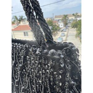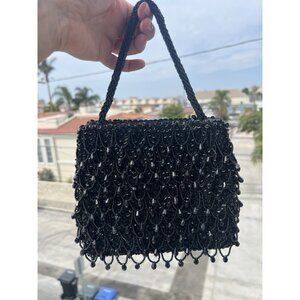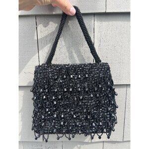 Vintage Handmade Hong Kong 50s beaded black sequin evening bag GORGEOUS MCM