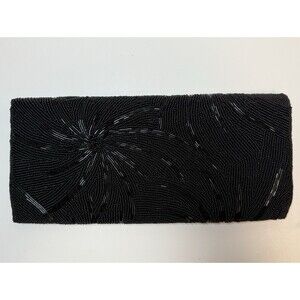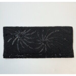 Elevate your evening attire with this exquisite Vintage Handmade Beaded Black Evening Clutch Bag. A timeless accessory, this clutch features sophisticated black seed beads that complements any outfit, making it a perfect choice for formal occasions or a night out. I believe possibly from the 1960s this bag is in excellent condition and all beads are in tact and shows no signs of wear. Measures approximately 10 inches wide by 4 1/2 inches tall. Flap snap closure with one inside zip pocket and one inside open pocket. completely lined in a black satin fabric. Comes from a smoke free home.