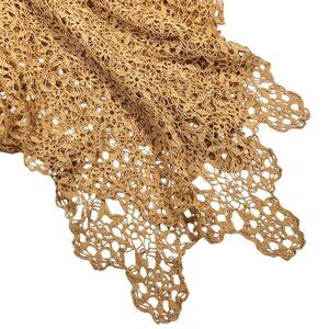 Vintage Handmade Intricate Lace Crocheted Tablecloth 60”x72” Tan Scalloped