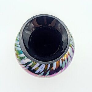 Colorful handmade iridescent amethyst art glass vase from ACC.
